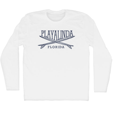 Product Story: Playalinda Surf Break Crossed Surf Board Surfing Destination Adult Cotton Long Sleeve T-ShirtProduct Description: Playalinda Surf Break Crossed Surf Board Surfing Destination Adult Cotton Long Sleeve T-Shirt Cotton (90% Cotton &10% Polyester) Buttery Smooth Soft Material Medium Weight Tee Soft Hand Print