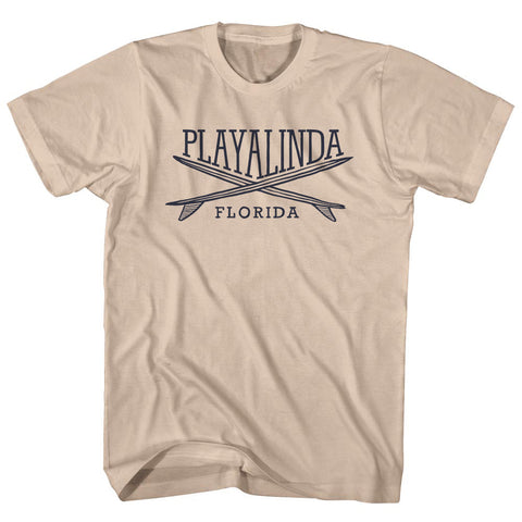 Product Story: Playalinda Surf Break Crossed Surf Board Surfing Destination Adult Cotton T-ShirtProduct Description: Playalinda Surf Break Crossed Surf Board Surfing Destination Adult Cotton T-Shirt Cotton Buttery Smooth Soft Material Medium Weight Tee Soft Hand Print