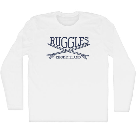 Product Story: Ruggles Surf Break Crossed Surf Board Surfing Destination Adult Cotton Long Sleeve T-ShirtProduct Description: Ruggles Surf Break Crossed Surf Board Surfing Destination Adult Cotton Long Sleeve T-Shirt Cotton Buttery Smooth Soft Material Medium Weight Tee Soft Hand Print