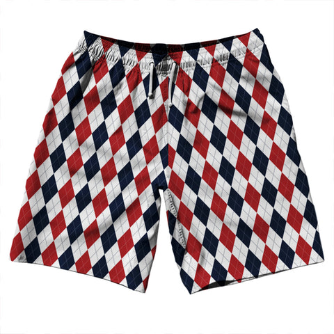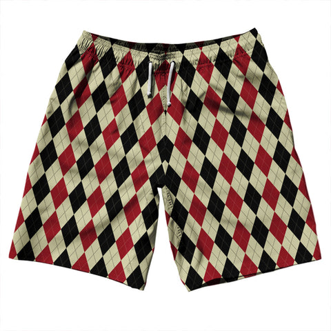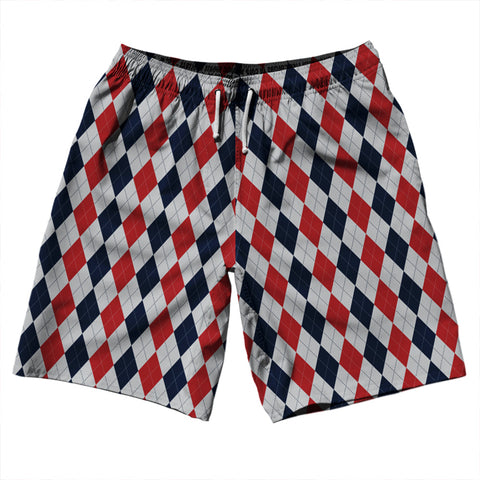 Product Story: Alabama US State Flag Swim Shorts 7" Made in USAProduct Description: Alabama US State Flag Swim Shorts 7" Made in USA Stripe 10" Inseam Swim Shorts Swim Trunks Board Shorts Bathing Suits Swim Suits Quick Drying Material Stretch Polyester Elastic Waistband Drawstring Side Pockets Made In USA