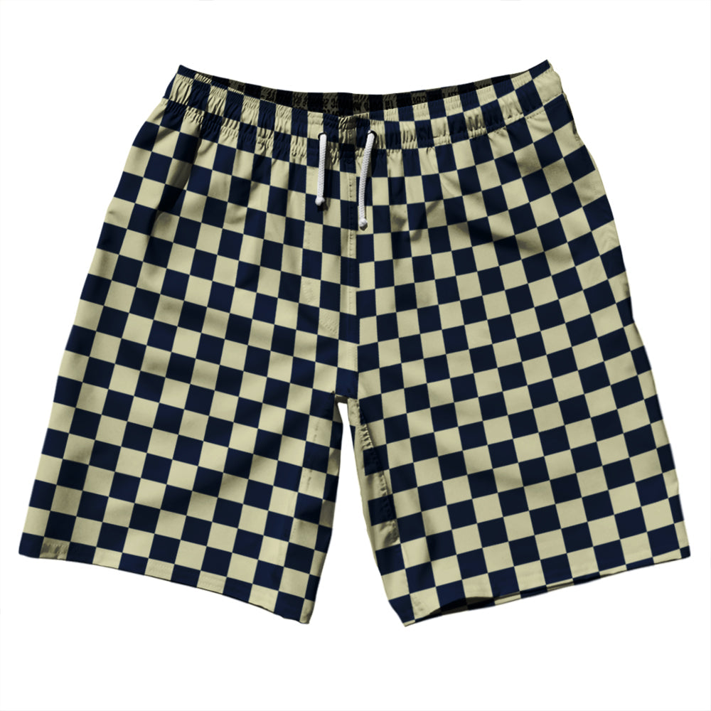 Checkerboard 1 Inch Blue Navy and Vegas Gold 10" Swim Shorts Made in USA