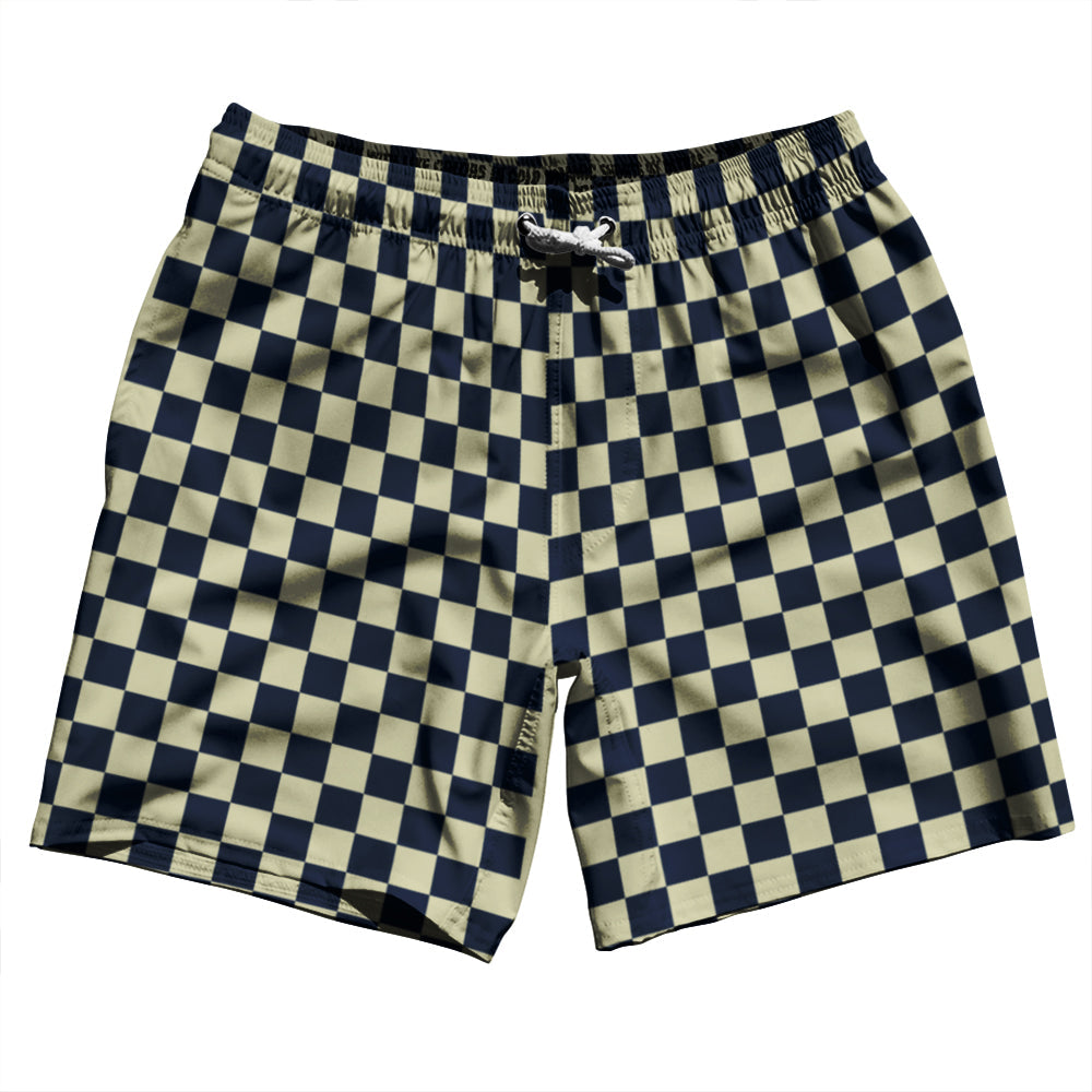 Checkerboard 1 Inch Blue Navy and Vegas Gold Swim Shorts 7" Made in USA