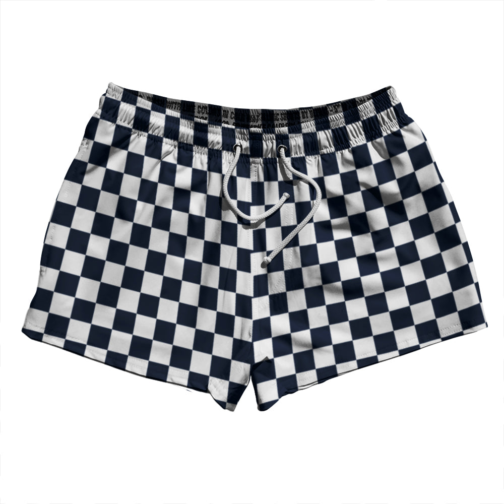 Checkerboard 1 Inch Blue Navy and White 2.5" Swim Shorts Made in USA