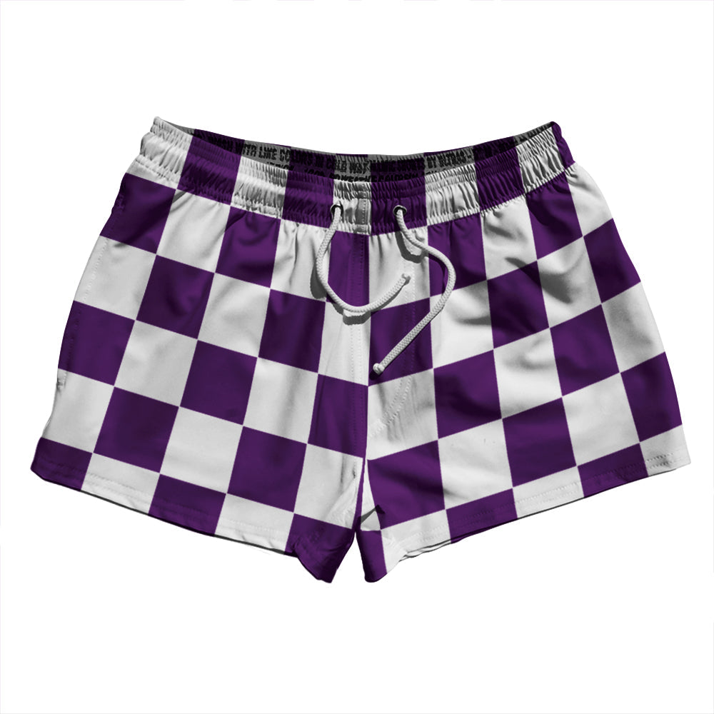 - Checkerboard 2.5 Inches Purple Medium and White 2.5" Swim Shorts Made in USA