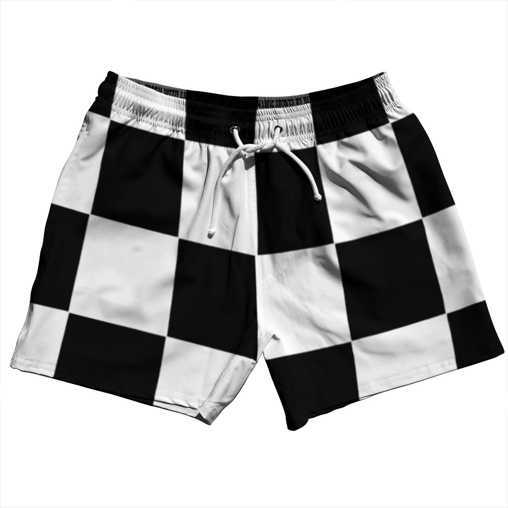 - Checkerboard 5 Inches Black and White 5" Swim Shorts Made in USA