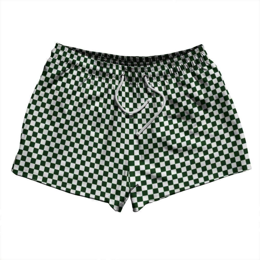 Checkerboard Half Inch Green Forest and White 2.5" Swim Shorts Made in USA