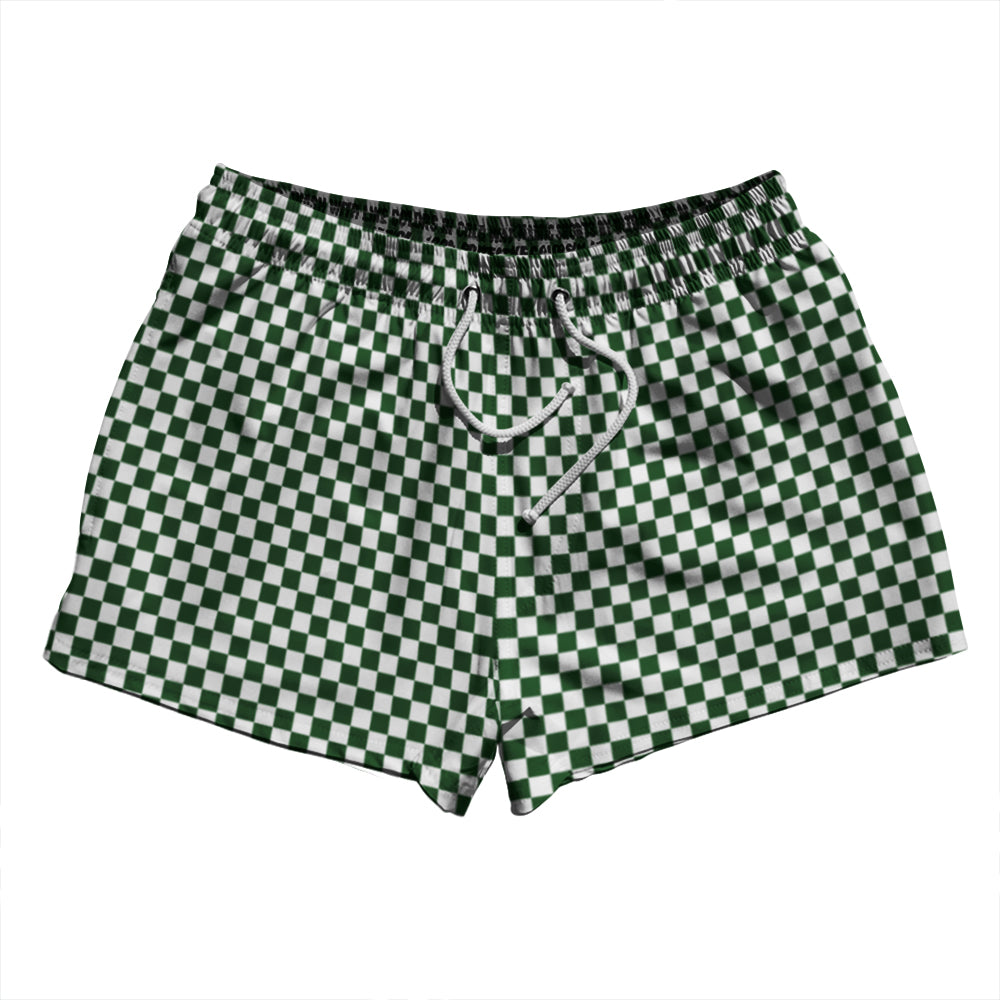 Checkerboard Half Inch Green Hunter and White 2.5" Swim Shorts Made in USA