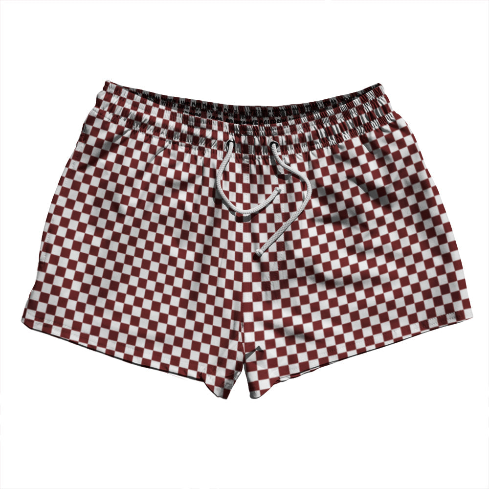 Checkerboard Half Inch Red Maroon and White 2.5" Swim Shorts Made in USA