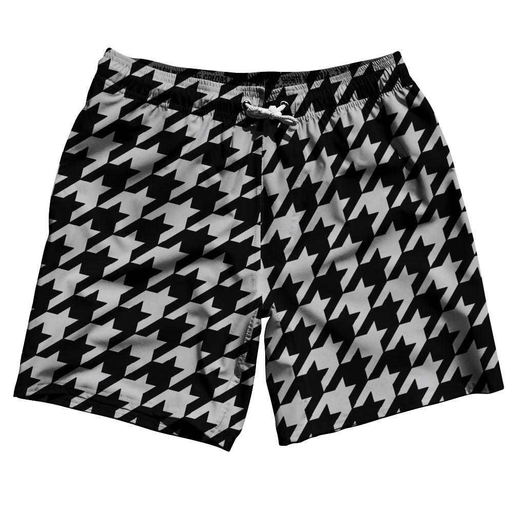 - Grey Medium And Black Houndstooth Swim Shorts 7" Made In USA