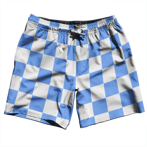 Product Story: Checkerboard 2.5 Inches Blue Carolina and White Swim Shorts 7" Made in USAProduct Description: Checkerboard 2.5 Inches Blue Carolina and White Swim Shorts 7" Made in USA 7'' Inseam & 20" Tall Swim Trunks Board Shorts Bathing Suits Swim Suits Quick Drying Material Stretch Polyester Elastic Waistband Drawstring Side Pockets Made In USA