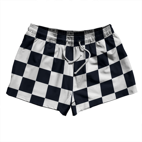 Product Story: Checkerboard 2.5 Inches Blue Navy Almost Black and White 2.5" Swim Shorts Made in USAProduct Description: Checkerboard 2.5 Inches Blue Navy Almost Black and White 2.5" Swim Shorts Made in USA Stripe 2.50" Inseam Swim Shorts Swim Trunks Board Shorts Bathing Suits Swim Suits Quick Drying Material Stretch Polyester Elastic Waistband Drawstring Side Pockets Made In USA