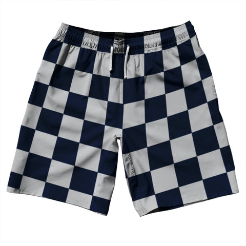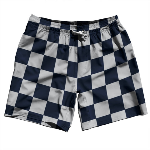 Product Story: Checkerboard 2.5 Inches Blue Navy And Grey Medium Swim Shorts 7" Made in USAProduct Description: Checkerboard 2.5 Inches Blue Navy And Grey Medium Swim Shorts 7" Made in USA 7'' Inseam & 20" Tall Swim Trunks Board Shorts Bathing Suits Swim Suits Quick Drying Material Stretch Polyester Elastic Waistband Drawstring Side Pockets Made In USA