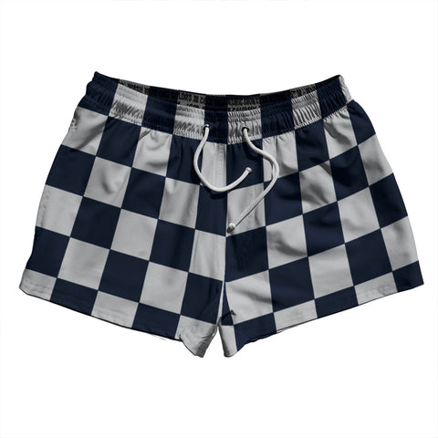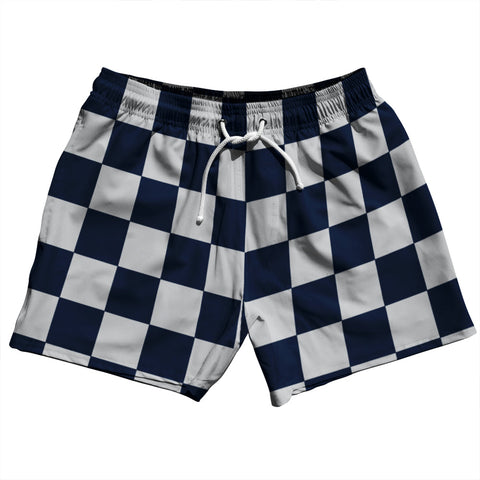 Product Story: Checkerboard 2.5 Inches Blue Navy And Grey Medium 2.5" Swim Shorts Made in USAProduct Description: Checkerboard 2.5 Inches Blue Navy And Grey Medium 2.5" Swim Shorts Made in USA Stripe 2.50" Inseam Swim Shorts Swim Trunks Board Shorts Bathing Suits Swim Suits Quick Drying Material Stretch Polyester Elastic Waistband Drawstring Side Pockets Made In USA