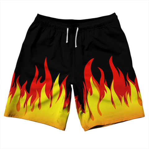 Product Story: Flame Pattern 5" Swim Shorts Made in USAProduct Description: Flame Pattern 5" Swim Shorts Made in USA 5" Inseam & 17.5" Tall Swim Trunks Board Shorts Bathing Suits Swim Suits Quick Drying Material Stretch Polyester Elastic Waistband Drawstring Side Pockets Made In USA