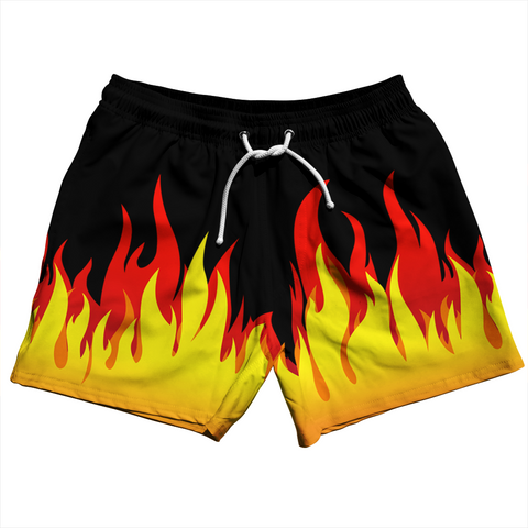 Product Story: Flame Pattern 2.5" Swim Shorts Made in USAProduct Description: Flame Pattern 2.5" Swim Shorts Made in USA Stripe 2.50" Inseam Swim Shorts Swim Trunks Board Shorts Bathing Suits Swim Suits Quick Drying Material Stretch Polyester Elastic Waistband Drawstring Side Pockets Made In USA