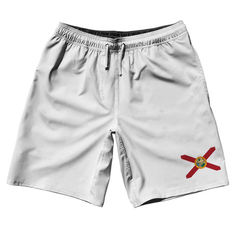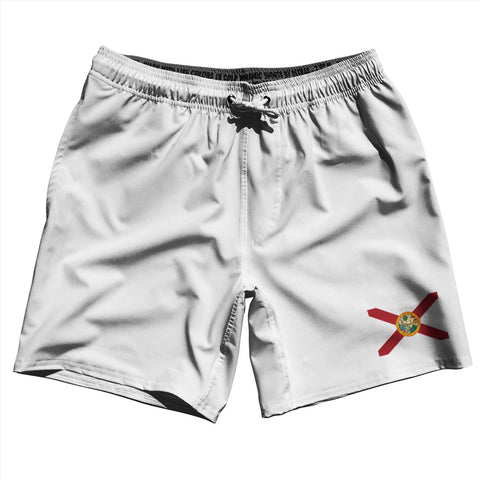 Product Story: Florida US State Flag Swim Shorts 7" Made in USAProduct Description: Florida US State Flag Swim Shorts 7" Made in USA Stripe 10" Inseam Swim Shorts Swim Trunks Board Shorts Bathing Suits Swim Suits Quick Drying Material Stretch Polyester Elastic Waistband Drawstring Side Pockets Made In USA