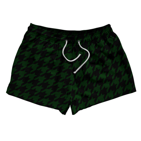 Product Story: Green Forest And Black Houndstooth 2.5" Swim Shorts Made In USAProduct Description: Green Forest And Black Houndstooth 2.5" Swim Shorts Made In USA Stripe 2.50" Inseam Swim Shorts Swim Trunks Board Shorts Bathing Suits Swim Suits Quick Drying Material Stretch Polyester Elastic Waistband Drawstring Side Pockets Made In USA
