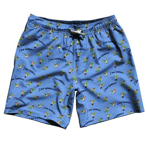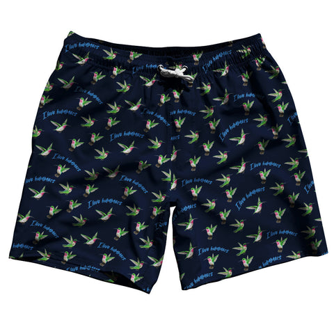 Product Story: Hummingbirds I Love Hummers Swim Shorts 7" Made in USA Product Description: Hummingbirds I Love Hummers Swim Shorts 7" Made in USA 7'' Inseam & 20" Tall Swim Trunks Board Shorts Bathing Suits Swim Suits Quick Drying Material Stretch Polyester Elastic Waistband Drawstring Side Pockets Made In USA