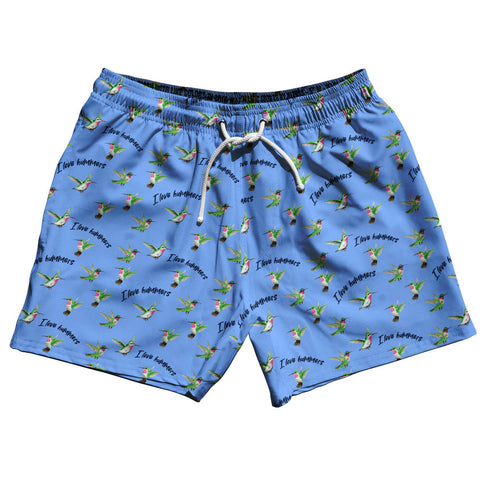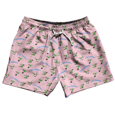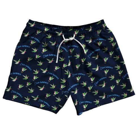 Product Story: Hummingbirds I Love Hummers 5" Swim Shorts Made in USA Product Description: Hummingbirds I Love Hummers 5" Swim Shorts Made in USA 5" Inseam & 17.5" Tall Swim Trunks Board Shorts Bathing Suits Swim Suits Quick Drying Material Stretch Polyester Elastic Waistband Drawstring Side Pockets Made In USA