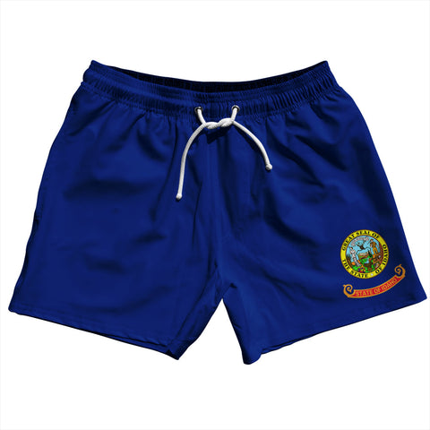 Product Story: Idaho US State Flag 5" Swim Shorts Made in USAProduct Description: Idaho US State Flag 5" Swim Shorts Made in USA Stripe 10" Inseam Swim Shorts Swim Trunks Board Shorts Bathing Suits Swim Suits Quick Drying Material Stretch Polyester Elastic Waistband Drawstring Side Pockets Made In USA