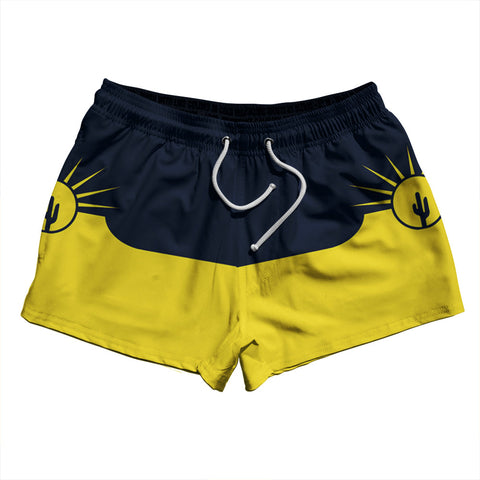 Product Story: Mesa Arizona 2.5" Swim Shorts Made in USAProduct Description: Mesa Arizona 2.5" Swim Shorts Made in USA Stripe 2.50" Inseam Swim Shorts Swim Trunks Board Shorts Bathing Suits Swim Suits Quick Drying Material Stretch Polyester Elastic Waistband Drawstring Side Pockets Made In USA