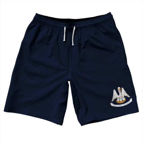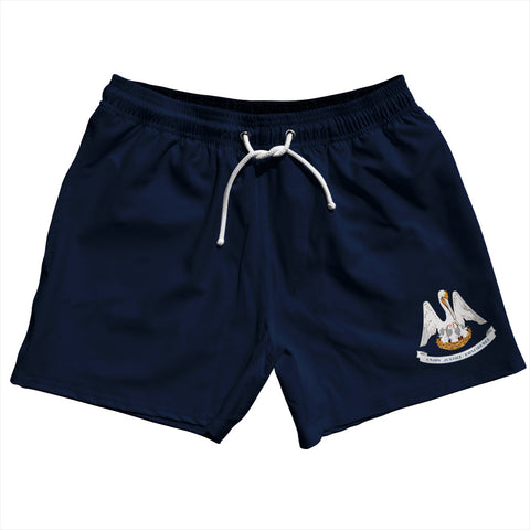 Product Story: Louisiana US State Flag 5" Swim Shorts Made in USAProduct Description: Louisiana US State Flag 5" Swim Shorts Made in USA 7'' Inseam & 20" Tall Swim Trunks Board Shorts Bathing Suits Swim Suits Quick Drying Material Stretch Polyester Elastic Waistband Drawstring Side Pockets Made In USA