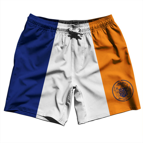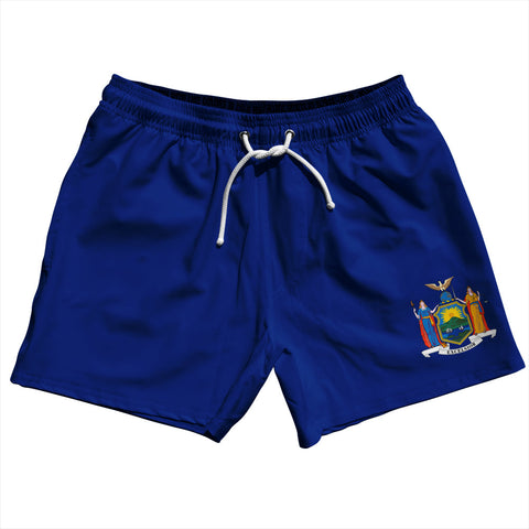 Product Story: New York US State Flag 5" Swim Shorts Made in USAProduct Description: New York US State Flag 5" Swim Shorts Made in USA 5" Inseam & 17.5" Tall Swim Trunks Board Shorts Bathing Suits Swim Suits Quick Drying Material Stretch Polyester Elastic Waistband Drawstring Side Pockets Made In USA