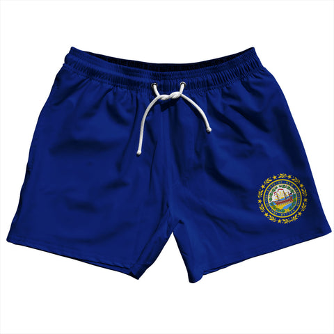 Product Story: New Hampshire US State Flag 5" Swim Shorts Made in USAProduct Description: New Hampshire US State Flag 5" Swim Shorts Made in USA 5" Inseam & 17.5" Tall Swim Trunks Board Shorts Bathing Suits Swim Suits Quick Drying Material Stretch Polyester Elastic Waistband Drawstring Side Pockets Made In USA