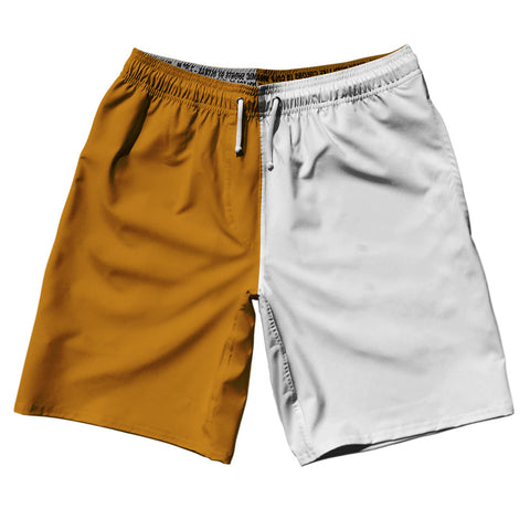 Product Story: Orange Burnt And White Quad Color Swim Shorts 7" Made In USAProduct Description: Orange Burnt And White Quad Color Swim Shorts 7" Made In USA 7'' Inseam & 20" Tall Swim Trunks Board Shorts Bathing Suits Swim Suits Quick Drying Material Stretch Polyester Elastic Waistband Drawstring Side Pockets Made In USA