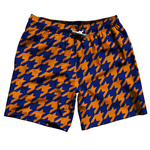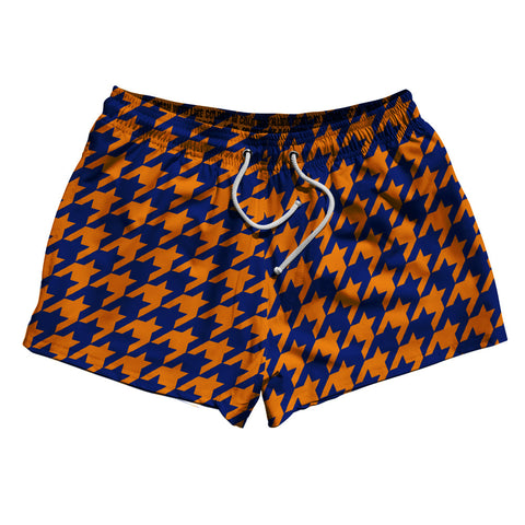 Product Story: Blue Royal And Tennessee Orange Houndstooth 2.5" Swim Shorts Made In USAProduct Description: Blue Royal And Tennessee Orange Houndstooth 2.5" Swim Shorts Made In USA Stripe 2.50" Inseam Swim Shorts Swim Trunks Board Shorts Bathing Suits Swim Suits Quick Drying Material Stretch Polyester Elastic Waistband Drawstring Side Pockets Made In USA
