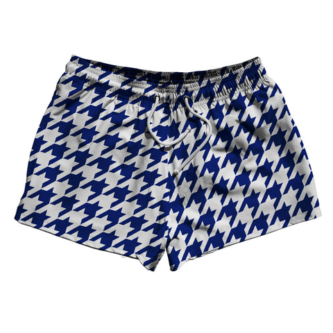 Product Story: Blue Royal And White Houndstooth 2.5" Swim Shorts Made In USAProduct Description: Blue Royal And White Houndstooth 2.5" Swim Shorts Made In USA Stripe 2.50" Inseam Swim Shorts Swim Trunks Board Shorts Bathing Suits Swim Suits Quick Drying Material Stretch Polyester Elastic Waistband Drawstring Side Pockets Made In USA