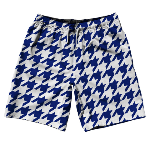 Product Story: Blue Royal And White Houndstooth 5" Swim Shorts Made In USAProduct Description: Blue Royal And White Houndstooth 5" Swim Shorts Made In USA 5" Inseam & 17.5" Tall Swim Trunks Board Shorts Bathing Suits Swim Suits Quick Drying Material Stretch Polyester Elastic Waistband Drawstring Side Pockets Made In USA