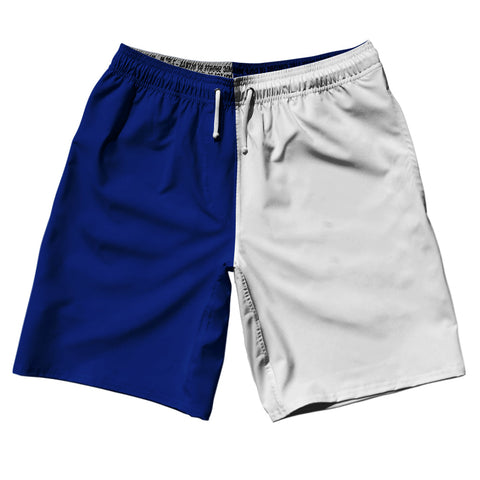 Product Story: Blue Royal And White Quad Color Swim Shorts 7" Made In USAProduct Description: Blue Royal And White Quad Color Swim Shorts 7" Made In USA 7'' Inseam & 20" Tall Swim Trunks Board Shorts Bathing Suits Swim Suits Quick Drying Material Stretch Polyester Elastic Waistband Drawstring Side Pockets Made In USA
