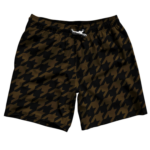 Product Story: Brown Dark And Black Houndstooth Swim Shorts 7" Made In USAProduct Description: Brown Dark And Black Houndstooth Swim Shorts 7" Made In USA 7'' Inseam & 20" Tall Swim Trunks Board Shorts Bathing Suits Swim Suits Quick Drying Material Stretch Polyester Elastic Waistband Drawstring Side Pockets Made In USA