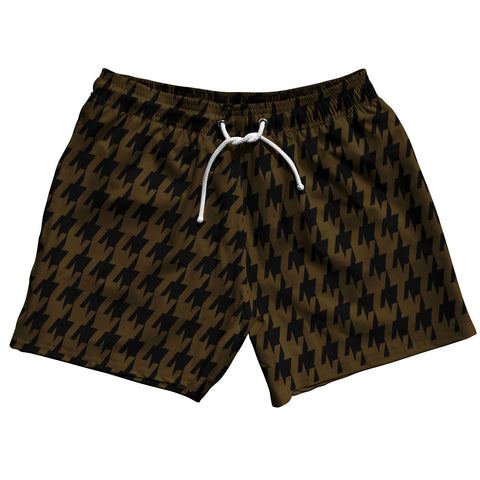 Product Story: Brown Dark And Black Houndstooth 5" Swim Shorts Made In USAProduct Description: Brown Dark And Black Houndstooth 5" Swim Shorts Made In USA 5" Inseam & 17.5" Tall Swim Trunks Board Shorts Bathing Suits Swim Suits Quick Drying Material Stretch Polyester Elastic Waistband Drawstring Side Pockets Made In USA