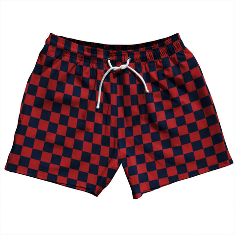 Product Story: Checkerboard 1 Inch Blue Navy and Red Dark 2.5" Swim Shorts Made in USAProduct Description: Checkerboard 1 Inch Blue Navy and Red Dark 2.5" Swim Shorts Made in USA Stripe 2.50" Inseam Swim Shorts Swim Trunks Board Shorts Bathing Suits Swim Suits Quick Drying Material Stretch Polyester Elastic Waistband Drawstring Side Pockets Made In USA