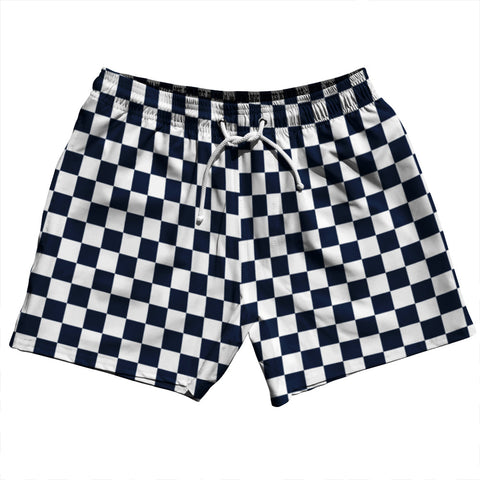 Product Story: Checkerboard 1 Inch Blue Navy and White 5" Swim Shorts Made in USAProduct Description: Checkerboard 1 Inch Blue Navy and White 5" Swim Shorts Made in USA 5" Inseam & 17.5" Tall Swim Trunks Board Shorts Bathing Suits Swim Suits Quick Drying Material Stretch Polyester Elastic Waistband Drawstring Side Pockets Made In USA