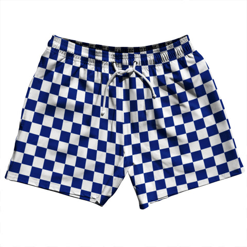Product Story: Checkerboard 1 Inch Blue Royal and White 5" Swim Shorts Made in USAProduct Description: Checkerboard 1 Inch Blue Royal and White 5" Swim Shorts Made in USA 5" Inseam & 17.5" Tall Swim Trunks Board Shorts Bathing Suits Swim Suits Quick Drying Material Stretch Polyester Elastic Waistband Drawstring Side Pockets Made In USA
