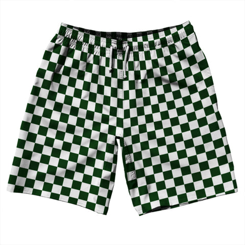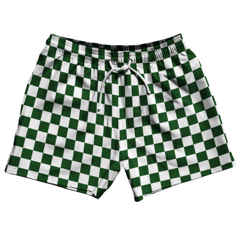 Product Story: Checkerboard 1 Inch Green Forest and White Swim Shorts 7" Made in USAProduct Description: Checkerboard 1 Inch Green Forest and White Swim Shorts 7" Made in USA 7'' Inseam & 20" Tall Swim Trunks Board Shorts Bathing Suits Swim Suits Quick Drying Material Stretch Polyester Elastic Waistband Drawstring Side Pockets Made In USA