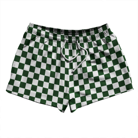 Product Story: Checkerboard 1 Inch Green Forest and White 2.5" Swim Shorts Made in USAProduct Description: Checkerboard 1 Inch Green Forest and White 2.5" Swim Shorts Made in USA Stripe 2.50" Inseam Swim Shorts Swim Trunks Board Shorts Bathing Suits Swim Suits Quick Drying Material Stretch Polyester Elastic Waistband Drawstring Side Pockets Made In USA