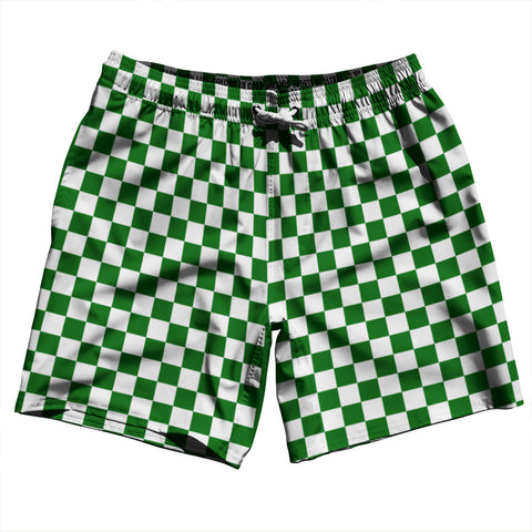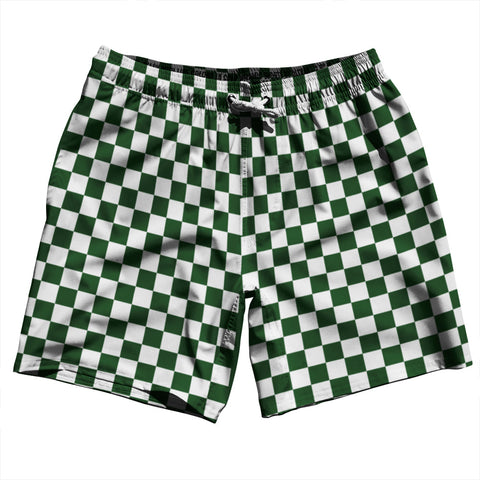 Product Story: Checkerboard 1 Inch Green Hunter and White Swim Shorts 7" Made in USAProduct Description: Checkerboard 1 Inch Green Hunter and White Swim Shorts 7" Made in USA 7'' Inseam & 20" Tall Swim Trunks Board Shorts Bathing Suits Swim Suits Quick Drying Material Stretch Polyester Elastic Waistband Drawstring Side Pockets Made In USA