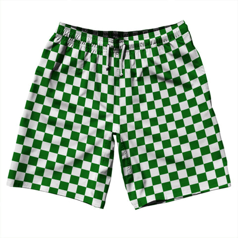 Product Story: Checkerboard 1 Inch Green Kelly and White Swim Shorts 7" Made in USAProduct Description: Checkerboard 1 Inch Green Kelly and White Swim Shorts 7" Made in USA 7'' Inseam & 20" Tall Swim Trunks Board Shorts Bathing Suits Swim Suits Quick Drying Material Stretch Polyester Elastic Waistband Drawstring Side Pockets Made In USA