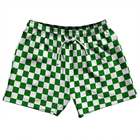 Product Story: Checkerboard 1 Inch Green Forest and White 5" Swim Shorts Made in USAProduct Description: Checkerboard 1 Inch Green Forest and White 5" Swim Shorts Made in USA 5" Inseam & 17.5" Tall Swim Trunks Board Shorts Bathing Suits Swim Suits Quick Drying Material Stretch Polyester Elastic Waistband Drawstring Side Pockets Made In USA