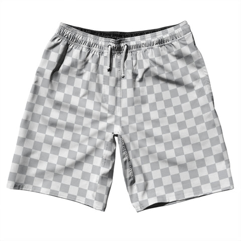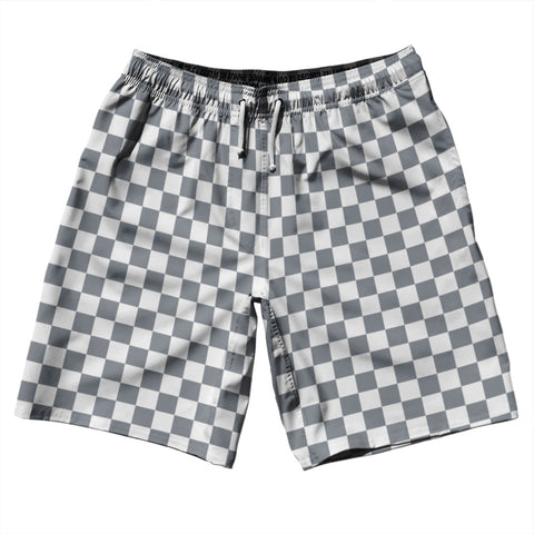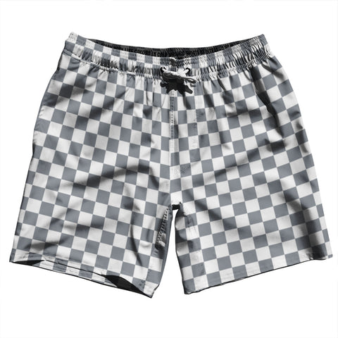 Product Story: Checkerboard 1 Inch Grey Dark and White Swim Shorts 7" Made in USAProduct Description: Checkerboard 1 Inch Grey Dark and White Swim Shorts 7" Made in USA 7'' Inseam & 20" Tall Swim Trunks Board Shorts Bathing Suits Swim Suits Quick Drying Material Stretch Polyester Elastic Waistband Drawstring Side Pockets Made In USA