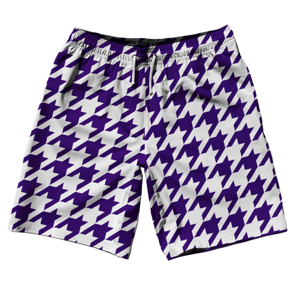 Purple Lakers And White Houndstooth 10" Swim Shorts Made In USA