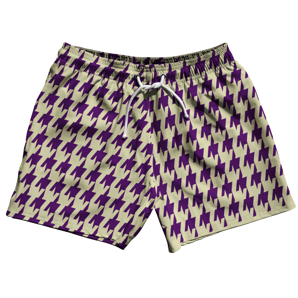 - Purple Medium And Vegas Gold Houndstooth 5" Swim Shorts Made In USA