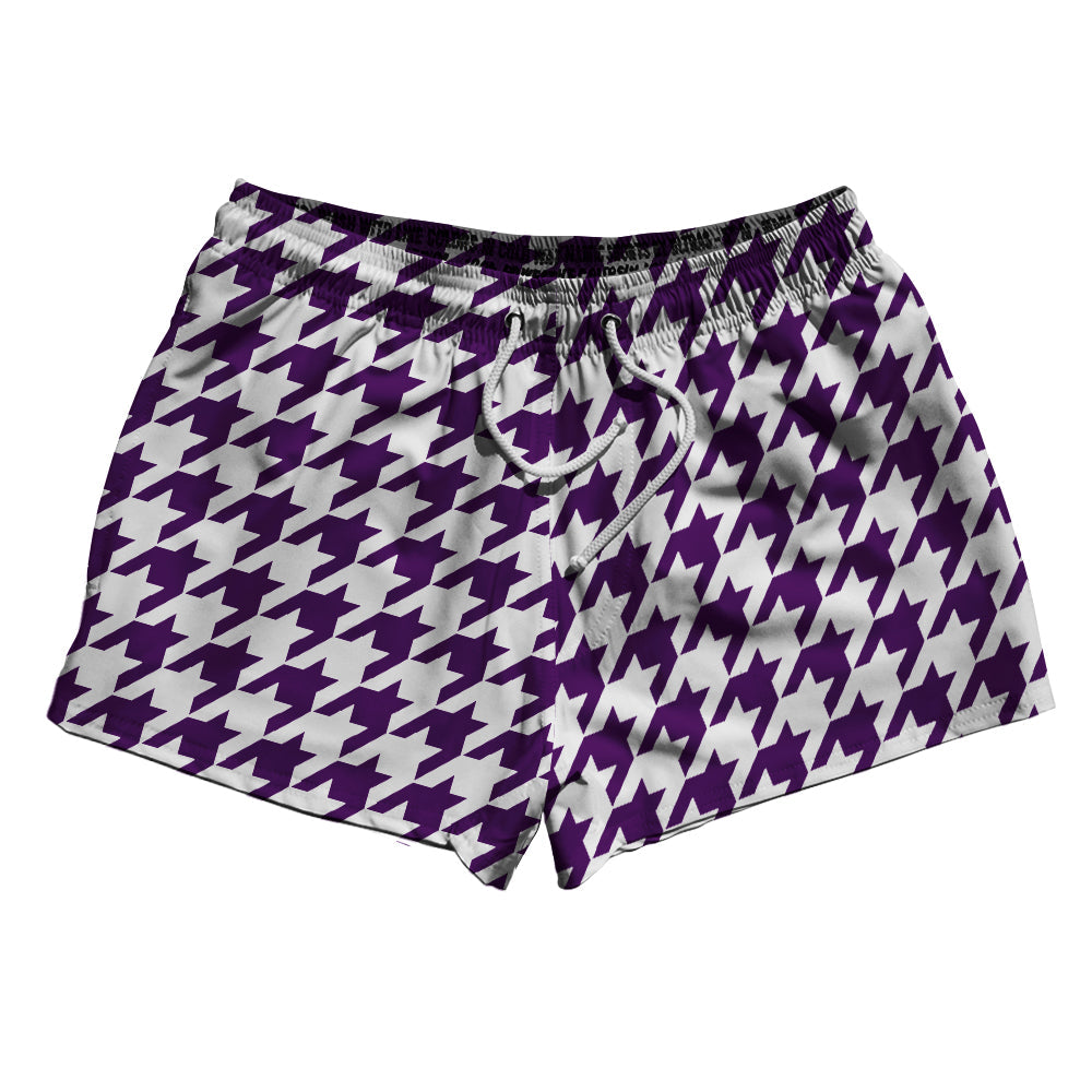 Purple Medium And White Houndstooth 2.5" Swim Shorts Made In USA