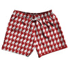 Red Dark And White Houndstooth 5" Swim Shorts Made In USA