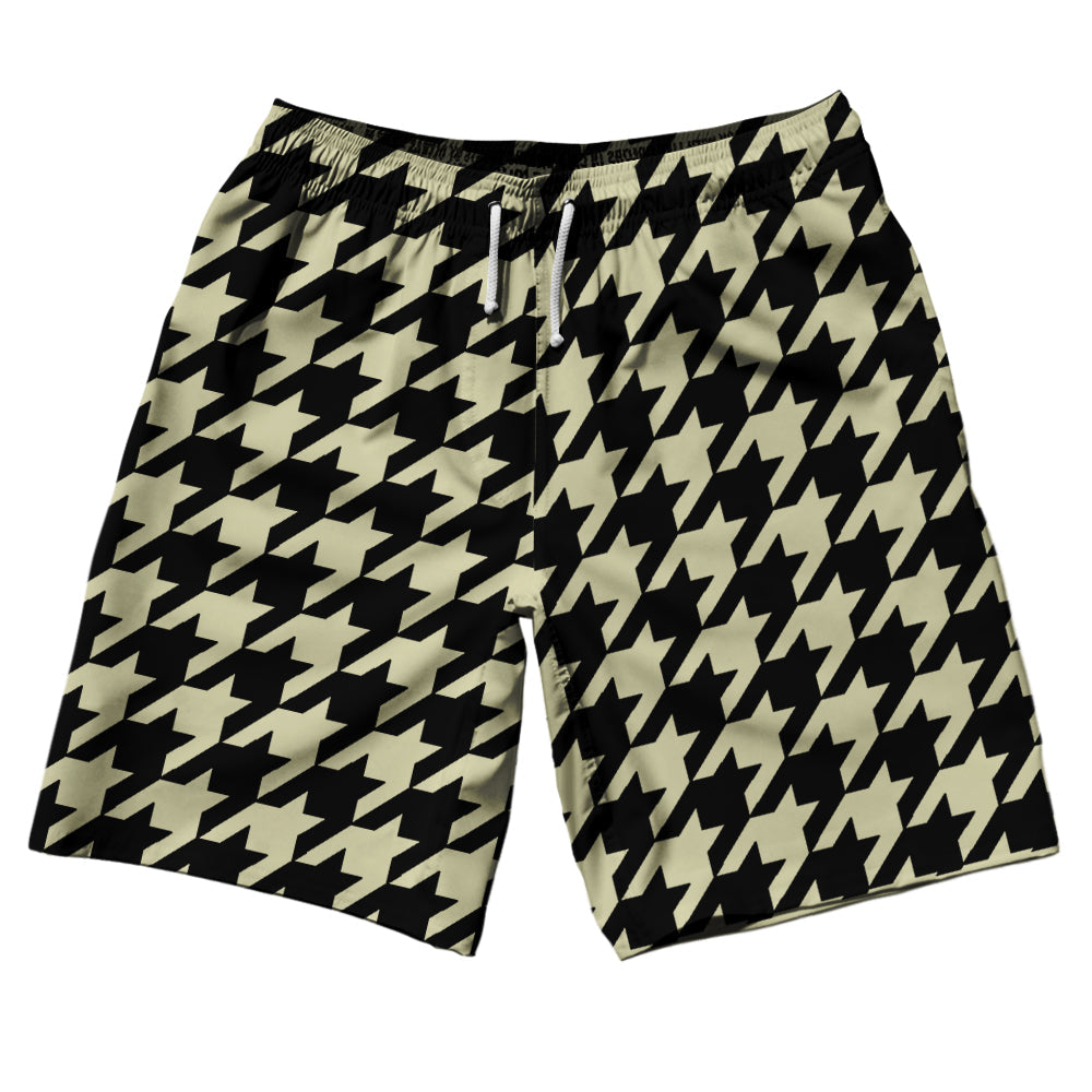 Vegas Gold And Black Houndstooth 10" Swim Shorts Made In USA