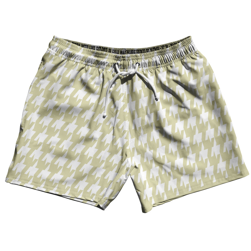 Vegas Gold And White Houndstooth 5" Swim Shorts Made In USA